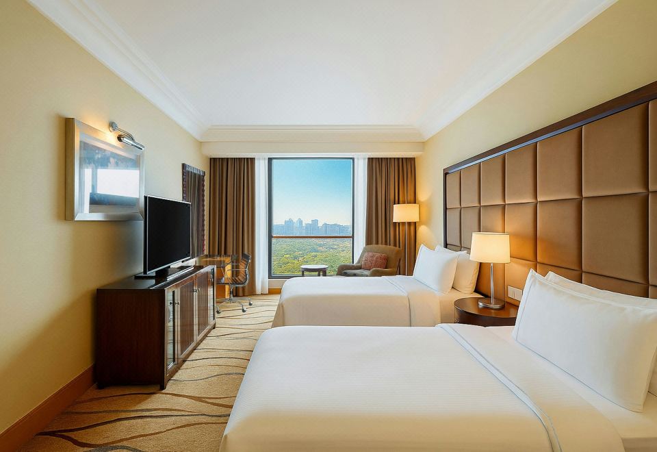 豪华双床房,客房,双床,城景,池畔